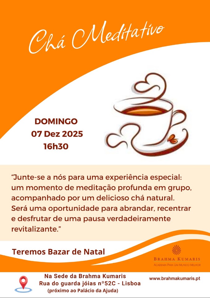 Junte-se a nós para uma experiência especial: um momento de meditação profunda em grupo, acompanhado por um delicioso chá natural. Será uma oportunidade para abrandar, recentrar e desfrutar de uma pausa verdadeiramente revitalizante.